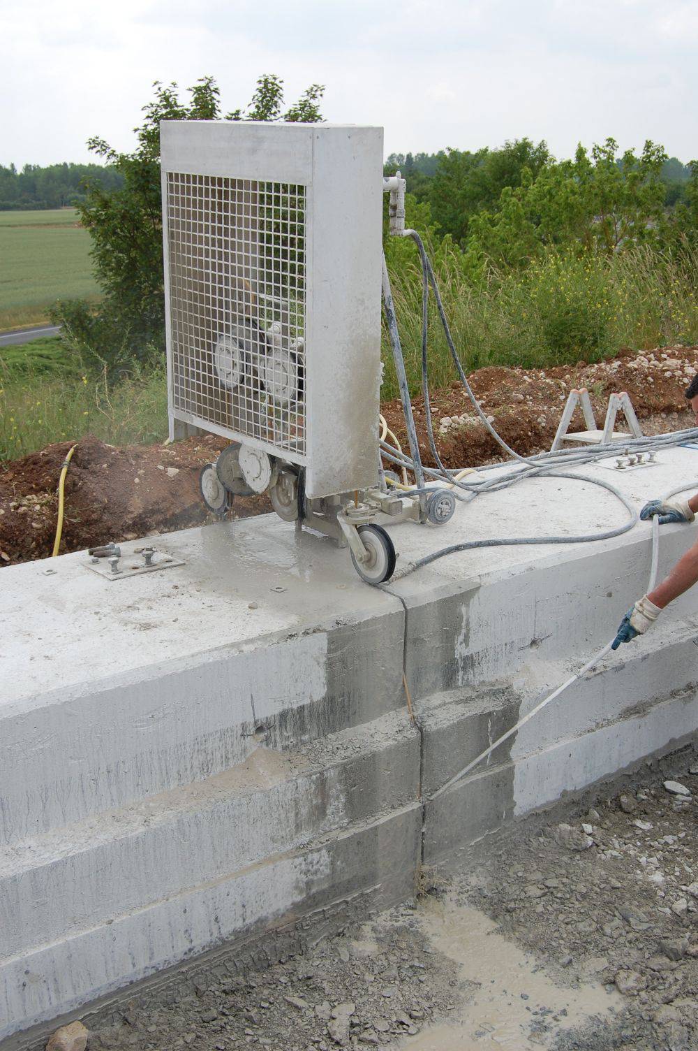 Les scies utilisées sont composées d’une série de poulies entraînant un câble équipé de perles diamantées. Le sciage au câble permet :
